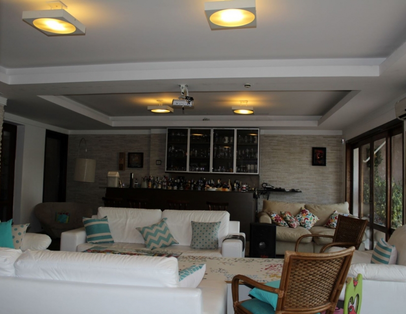 O imóvel conta com 6 suítes, todas com varanda e vista para o mar. O piso térreo possui varanda, cozinha planejada, lavabo, jardim de inverno, área gourmet, solário e uma linda piscina medindo 11x3, 6 metros e 3 alturas diferentes, com borda infinita.