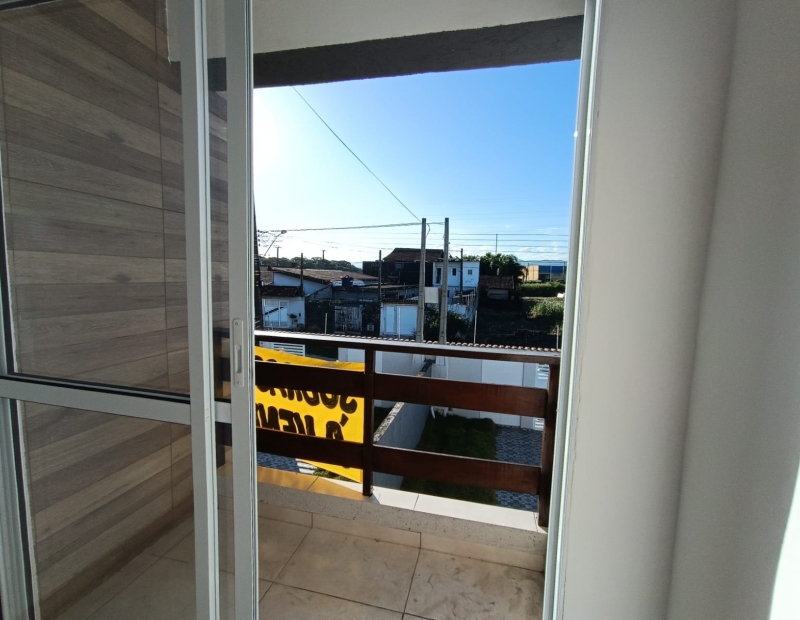 Esse lindo sobrado está localizado lado praia, próximo à rodovia.